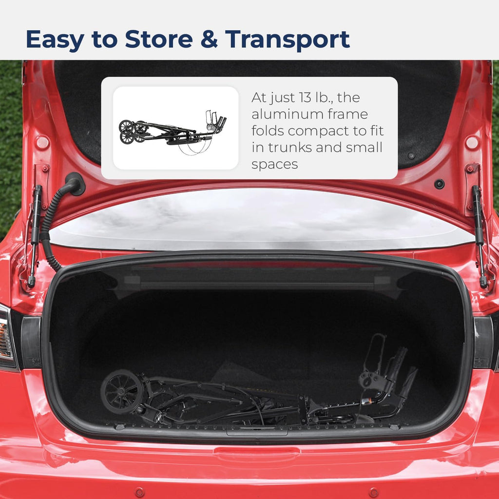 Answer: Common wheel sizes are 6 to 10 inches. Larger wheels roll more easily over outdoor surfaces and small obstacles. Choose a size that matches your typical indoor or outdoor use.