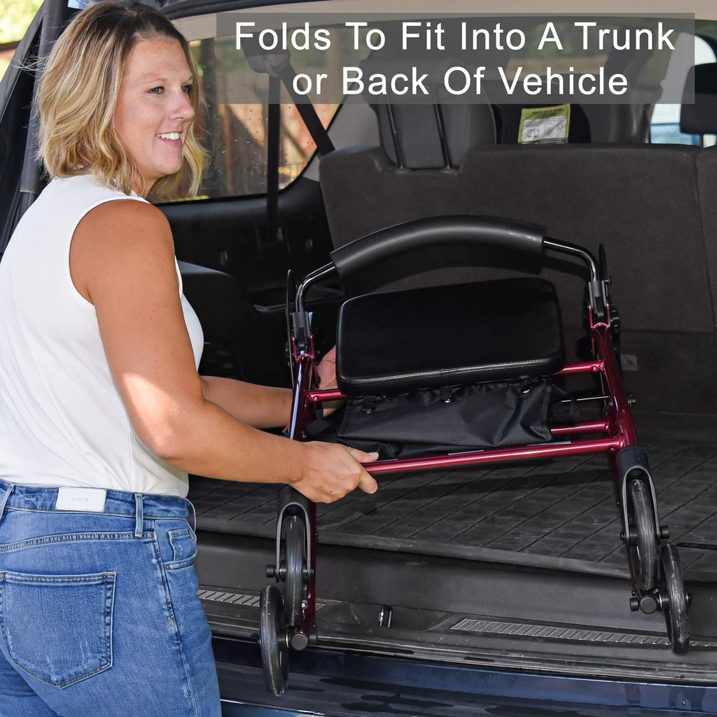 Question: How large are the wheels on Probasics Steel Rollator For Seniors and Elders, Wheel size 6inches With Height Adjustable, Weight Capacity 300lbs Burgundy Color , Foldable, RLS6BG and what terrain is it suited for?