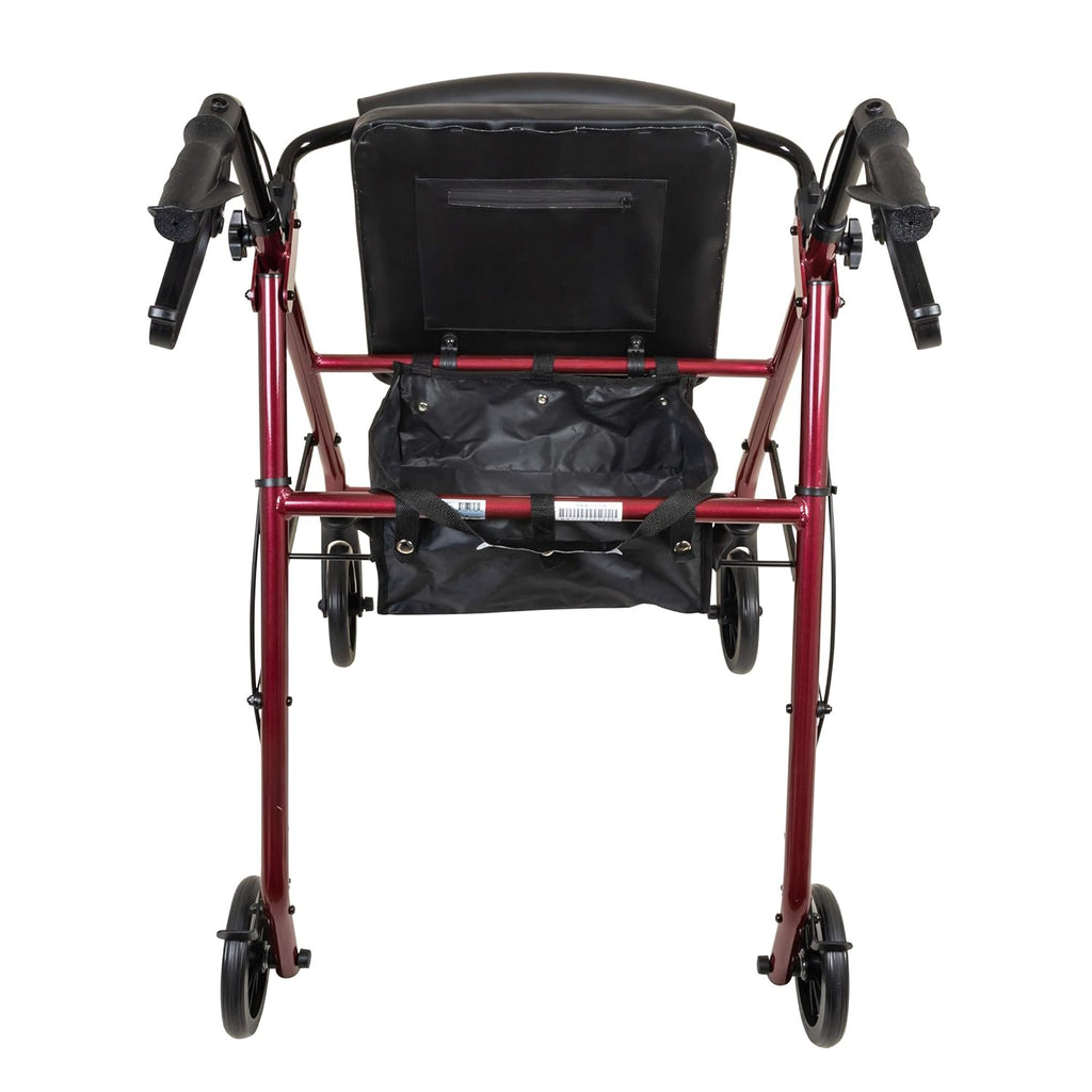 Question: What are the seat size and sitting features of Probasics Steel Rollator For Seniors and Elders, Wheel size 6inches With Height Adjustable, Weight Capacity 300lbs Burgundy Color , Foldable, RLS6BG?