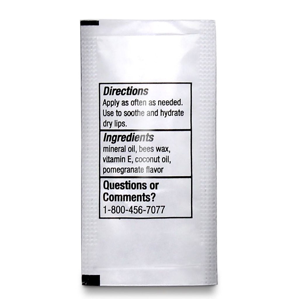• Bálsamo labial con sabor a granada en 144 prácticos paquetes de aluminio.