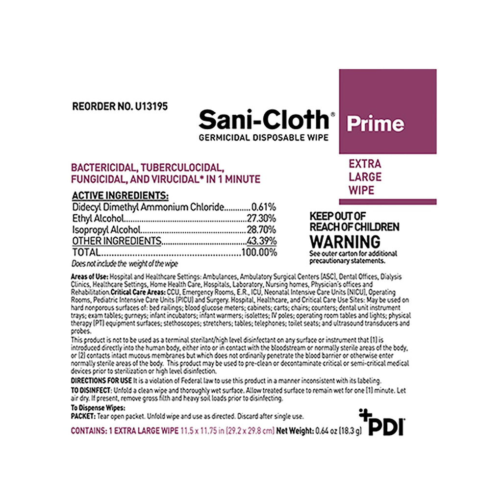 Información sobre la cantidad: TOALLITA GERMICIDA SANI-CLOTH PRIME XLG (50 unidades, 3 unidades por caja)