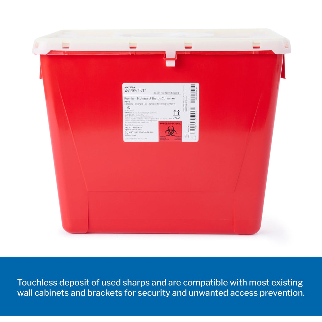 • Los contenedores permiten el depósito sin contacto de objetos punzantes usados ​​y son compatibles con la mayoría de los gabinetes de pared y soportes existentes para mayor seguridad y prevención de accesos no deseados.