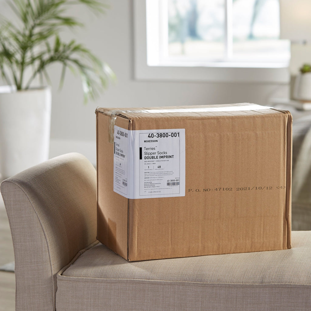Información sobre la cantidad: ZAPATILLAS DE TERRY DOBLE CON ESTAMPADO, ADULTO XXL, GRIS (48 UDS./CAJA)
