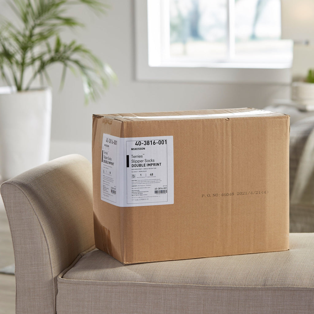 Información sobre la cantidad: ZAPATILLAS DE TERRY DOBLE CON ESTAMPADO, ADULTO, RBLU, XLG (48 ud./caja)