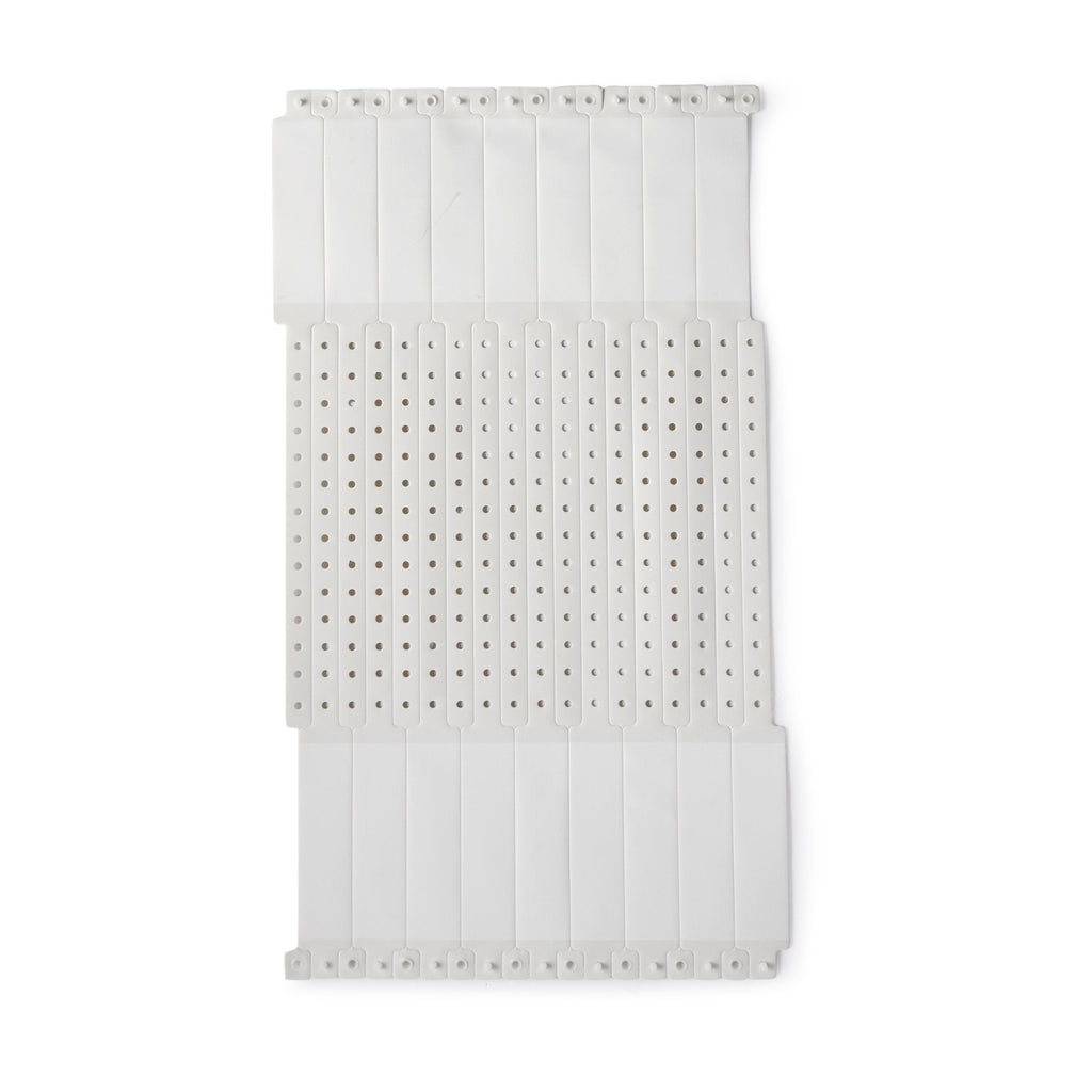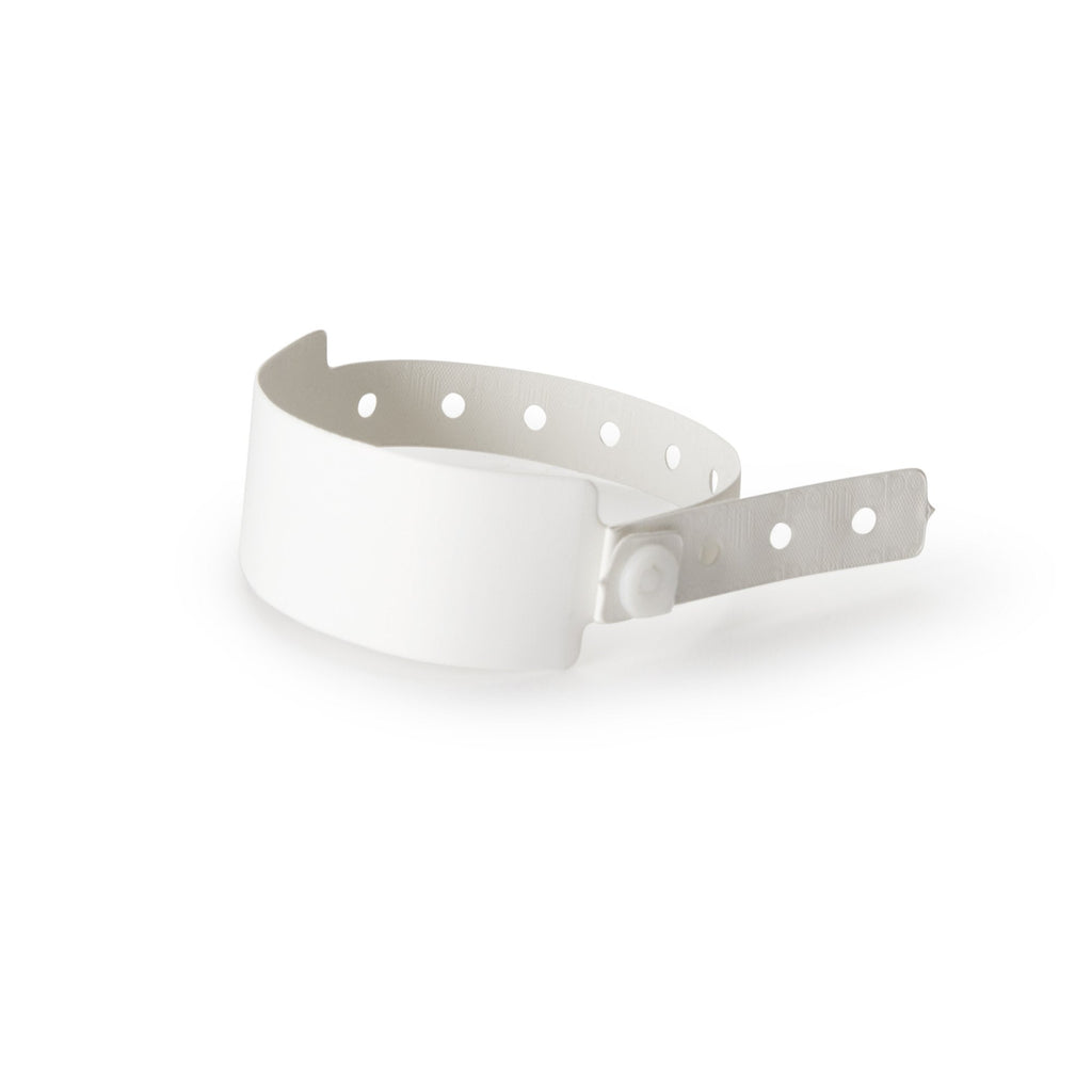 • La pulsera de identificación de vinilo mide entre 12 y 13 pulgadas de largo y tiene un broche permanente.