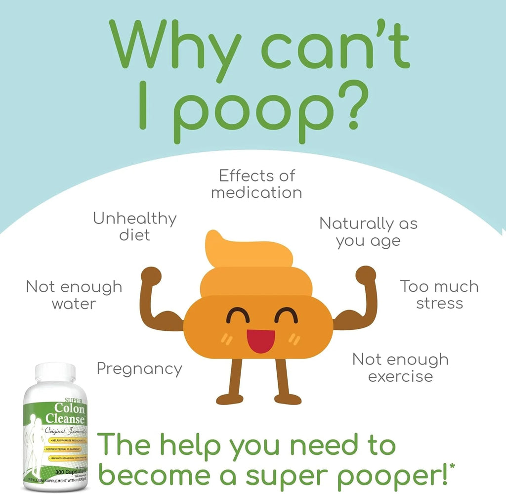 Answer: day gentle internal detox for occasional use* PROMOTES:  Waste and toxin elimination* MAY REDUCES:  bloat from excess waste* Gentle & that are gluten, soy, and dairy free, so you can have relief from irregularity and constipation caused by poor diet, dehydration, medication effects, stress, age, pregnancy, lack of exercise, and more How it works : Poor diet, stress, fatigue and environmental toxins all contribute to limiting your body’s ability to manage waste and regulate digestion. Super Colon Cleanse is a gentle, herbal cleanse that helps the body eliminate built up waste, provides good gut bacteria and may help optimize digestive processes.* Formulated with traditional herbs sourced in India and Chile, including the natural stimulant, Senna Leaf and soluble fiber, Psyllium Husk, Super Colon Cleanse may help with occasional constipation, eliminates toxins, and improves nutrient absorption.* Good health starts in the gut!* Â