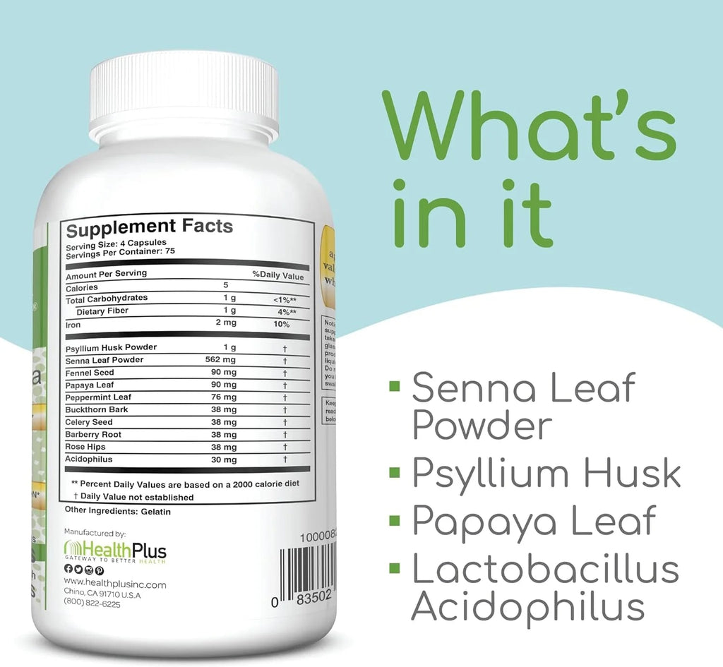 Answer: Health Plus Super Colon Cleanse Original Formula, 300 Capsules, 75 Servings is a fiber/digestive health supplement described in the product details.