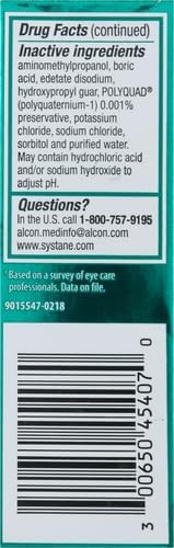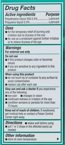 Ingredientes activos - Propósito: Polietilenglicol 400 0,4 % - Lubricante. Propilenglicol 0,3 % - Lubricante. Ingredientes inactivos: Aminometilpropanol, ácido bórico, edetato disódico, hidroxipropil guar, policuaternio-1 (Polyquatemium-1) 0,001 %, conservante, cloruro de potasio, cloruro de sodio, sorbitol y agua purificada. Puede contener ácido clorhídrico o hidróxido de sodio para ajustar el pH.