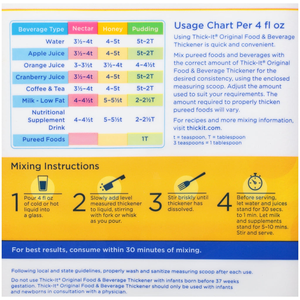 Durante más de 30 años, el producto Thick-It Original ha sido recomendado por profesionales de la salud para personas con disfagia. El primer espesante de alimentos y bebidas disponible comercialmente para la disfagia, Thick-It Original, le permite lograr la consistencia deseada de forma rápida y sencilla, sin alterar el sabor ni la apariencia de los alimentos y bebidas en puré, ya sean fríos o calientes.