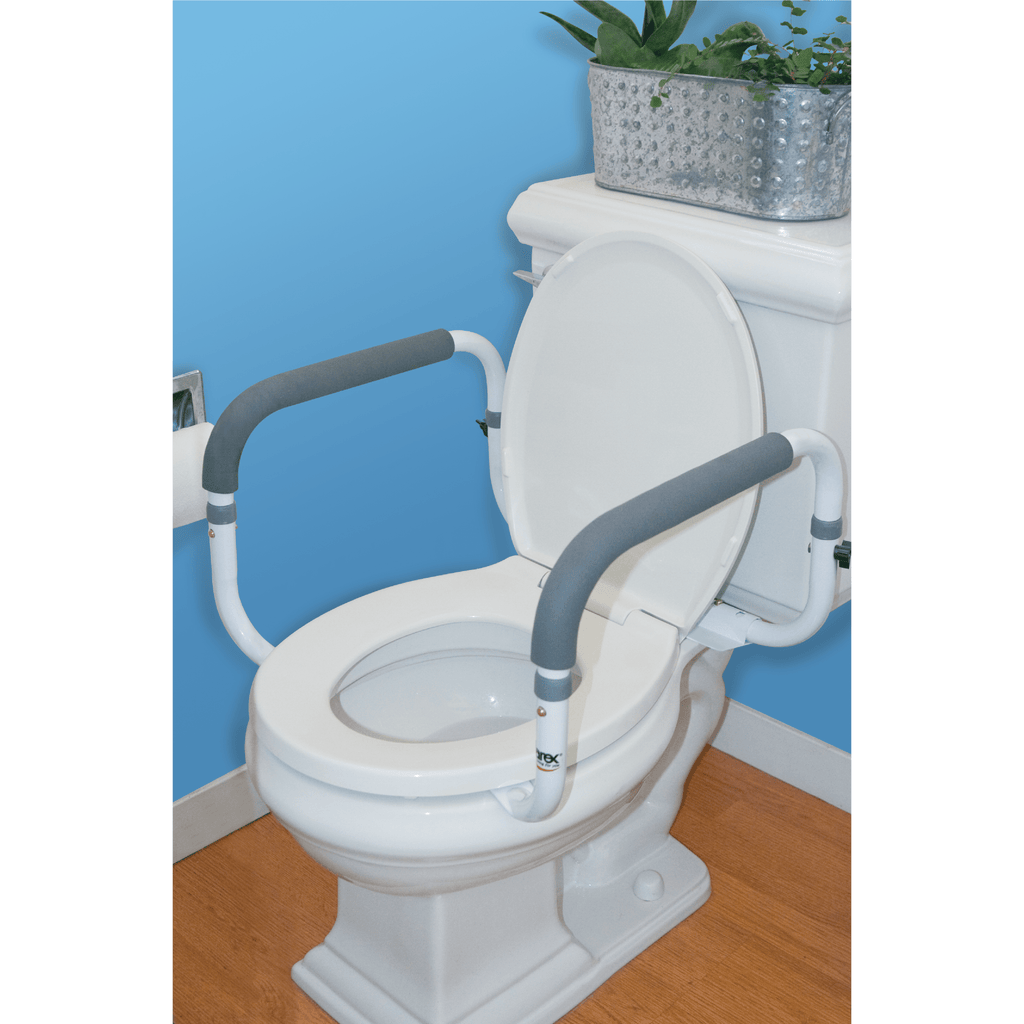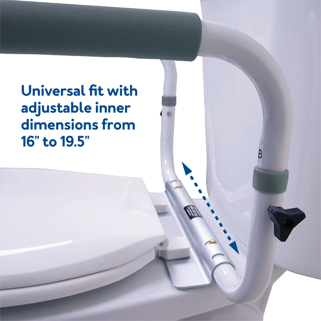 • Fácil de instalar. Instalar los pasamanos para asientos de inodoro es fácil y rápido. El pasamanos ajustable se fija fácilmente al inodoro para un ajuste firme.
