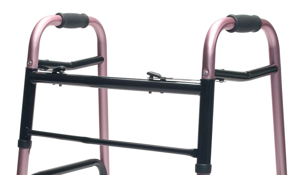 Answer: Most walkers fold flat using side buttons or levers. Check the overall width when open and folded. Compare with your doorway and storage space measurements listed under Specifications.