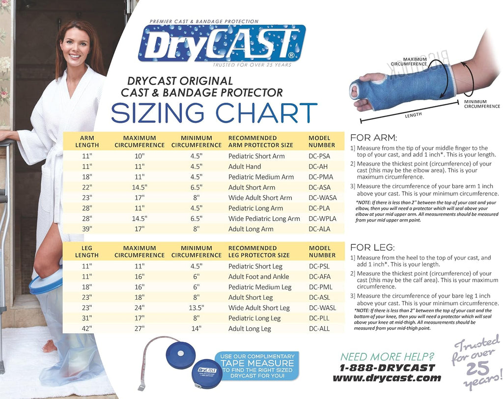 • La funda de yeso DryCast mantiene el yeso y el vendaje secos en la ducha o el baño.
