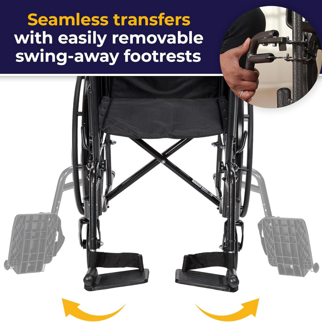 Answer: Yes, most models fold easily by lifting the seat or center strap. Folded width is listed under Specifications. Some models include quick release wheels or removable footrests for compact storage.