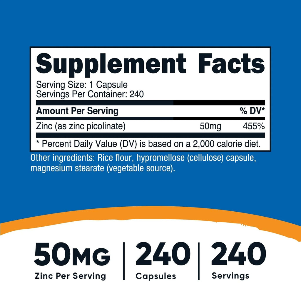 Zinc (como picolinato de zinc), harina de arroz, cápsula de hipromelosa (celulosa), estearato de magnesio (fuente vegetal).