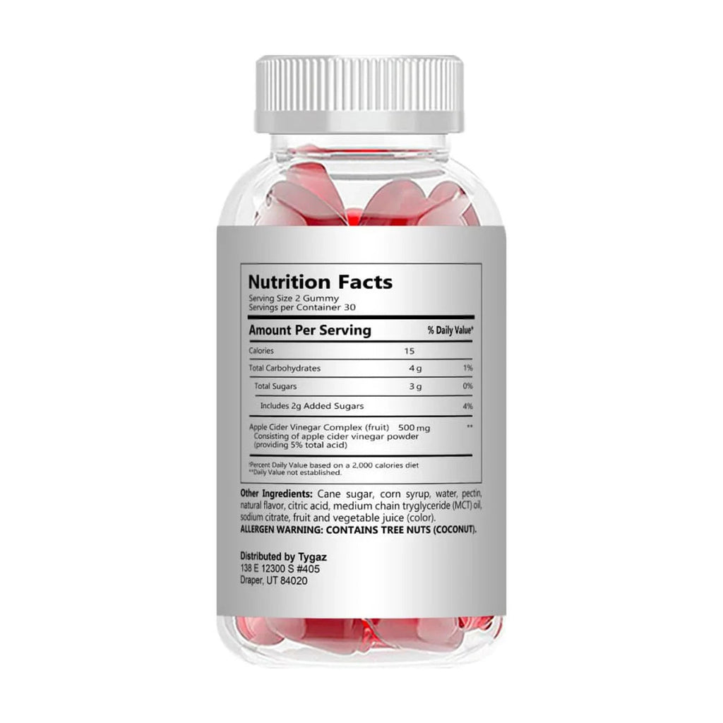 Apple Cider Vinegar, Cane Sugar, Corn Syrup, Water, Pectin, Natural Flavor, Citric Acid, Medium Chain Triglyceride (MCT) Oil, Sodium Citrate, Fruit and Vegetable Juice (Color)./div>