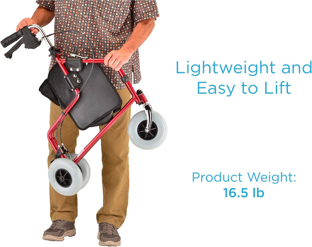 3 Wheel Rollator Traveler Red Adjustable Height / Folding Aluminum Frame, Packaging Type- Each