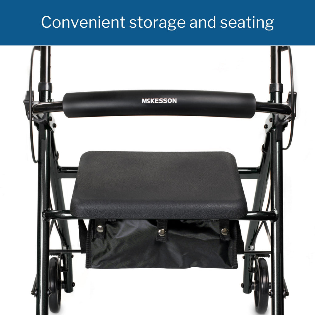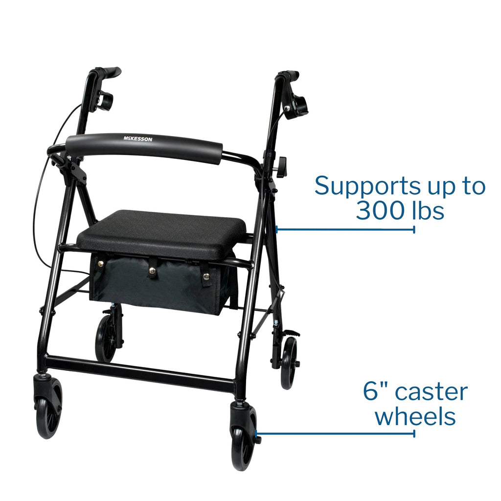 • Casters allow the McKesson four-wheel rollator to move around smoothly.