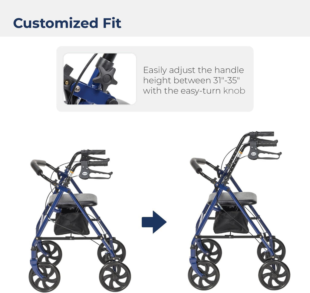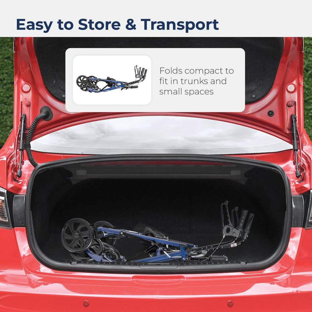 • A compact and foldable design allows you to easily transport your rollator anywhere