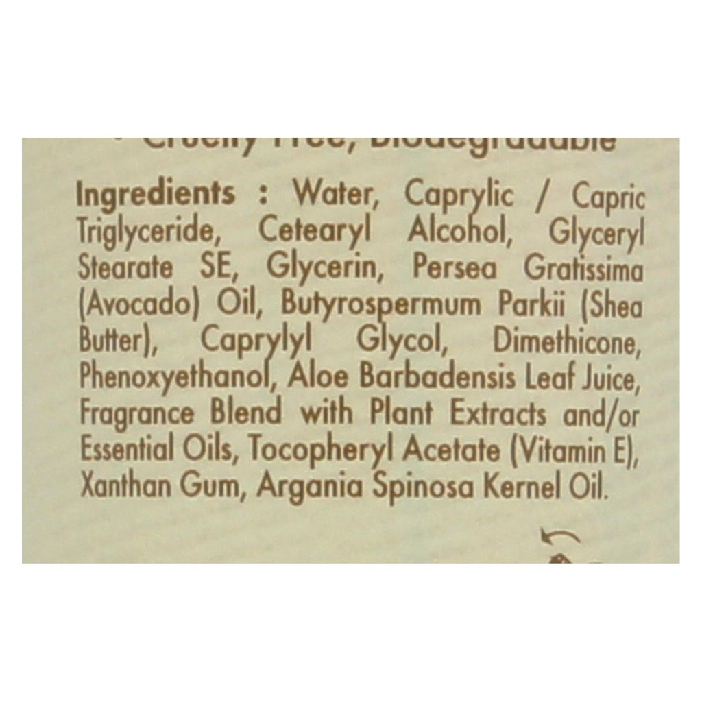 ingredients : : water;caprylic / capric triglyceride;cetearyl alcohol;glyceryl stearate se;glycerin;persea gratissima;avocado;oil;butyrospermum parkii;shea butter;caprylyl glycol;dimethicone;phenoxyethanol;aloe barbadensis leaf juice;fragrance blend with plant extracts and/or essential oils;tocopheryl acetate;vitamin e;xanthan gum;argania spinosa kernel oil
