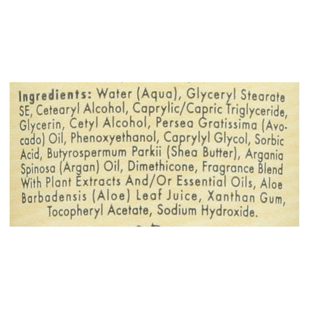 ingredients : water;aqua;glyceryl stearate se;cetearyl alcohol;caprylic/capric triglyceride;glycerin;cetyl alcohol;persea gratissima;avo-cado;oil;phenoxyethanol;caprylyl glycol;sorbic acid;butyrospermum parkii;shea butter;argania spinosa;argan;dimethicone;fragrance blend with plant extracts and/or essential oils;aloe barbadensis;aloe;leaf juice;xanthan gum;tocopheryl acetate;sodium hydroxide