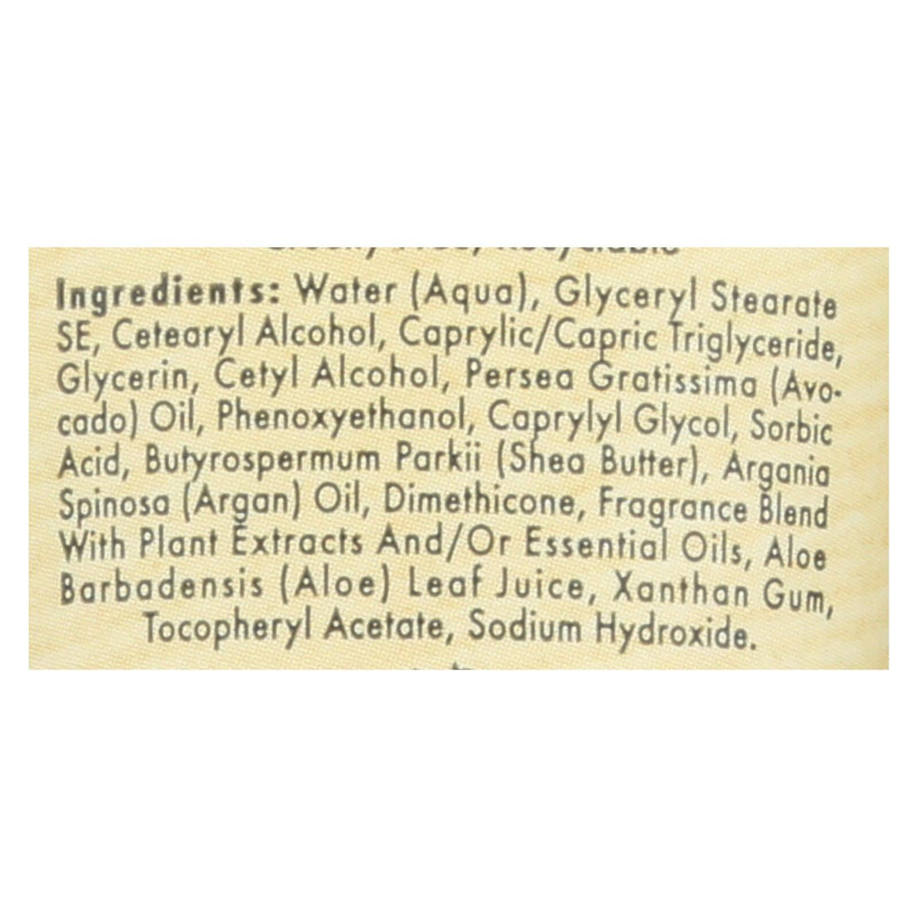 ingredients : water;aqua;glyceryl stearate se;cetearyl alcohol;caprylic/capric triglyceride;glycerin;cetyl alcohol;persea gratissima;avocado;oil;phenoxyethanol;caprylyl glycol;sorbic acid;butyrospermum parkii;shea butter;argania spinosa;argan;dimethicone;fragrance blend with plant extracts and/or essential oils;aloe barbadensis;aloe;leaf juice;xanthan gum;tocopheryl acetate;sodium hydroxide