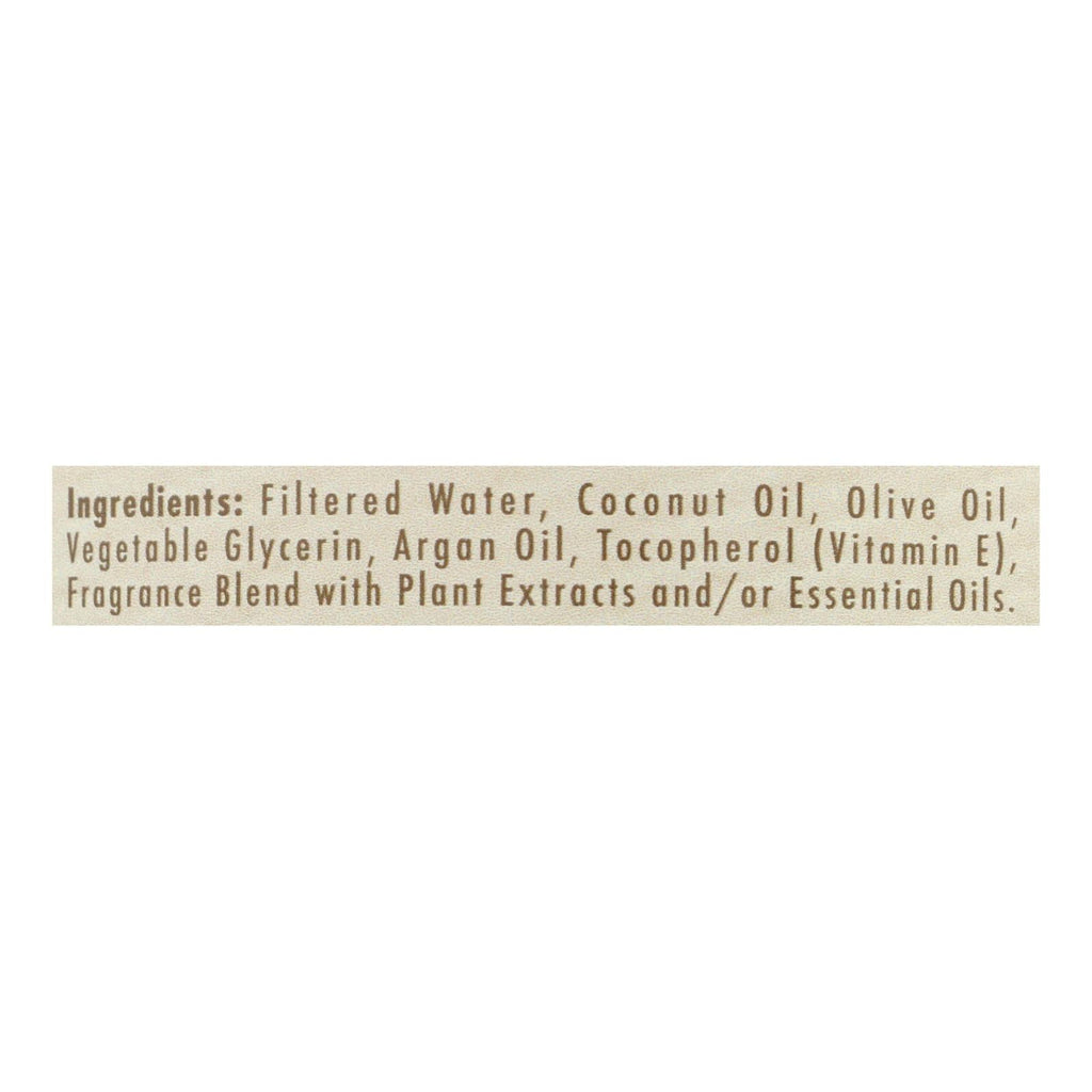 ingredients : filtered water;coconut oil;olive oil;vegetable glycerin;argan oil;tocopherol (vitamin e);fragrance blend with plant extracts and/or essential oils