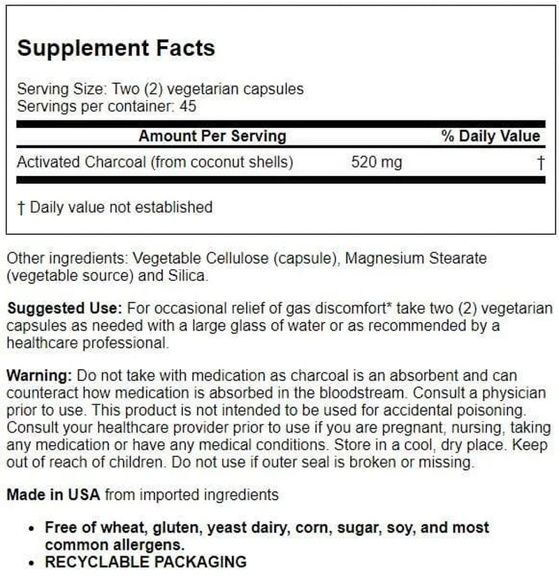 Support healthy digestion with Bio Nutrition Activated Coconut Charcoal. Each serving delivers 520 mg of charcoal. Contains no wheat, corn, gluten, yeast, dairy, sugar, soy or most common allergens.