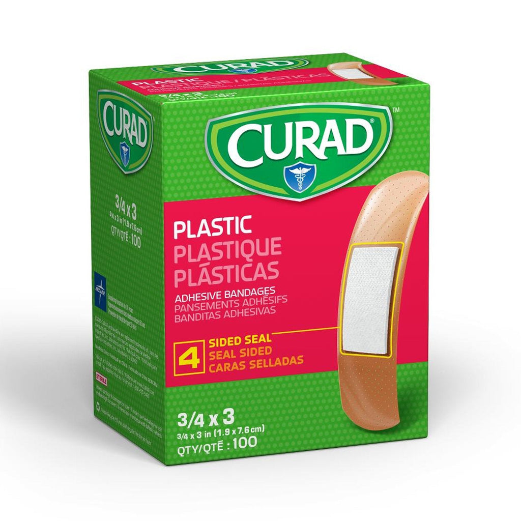 • Curad plastic adhesive bandages have a four-sided seal with even adhesion to keep germs away