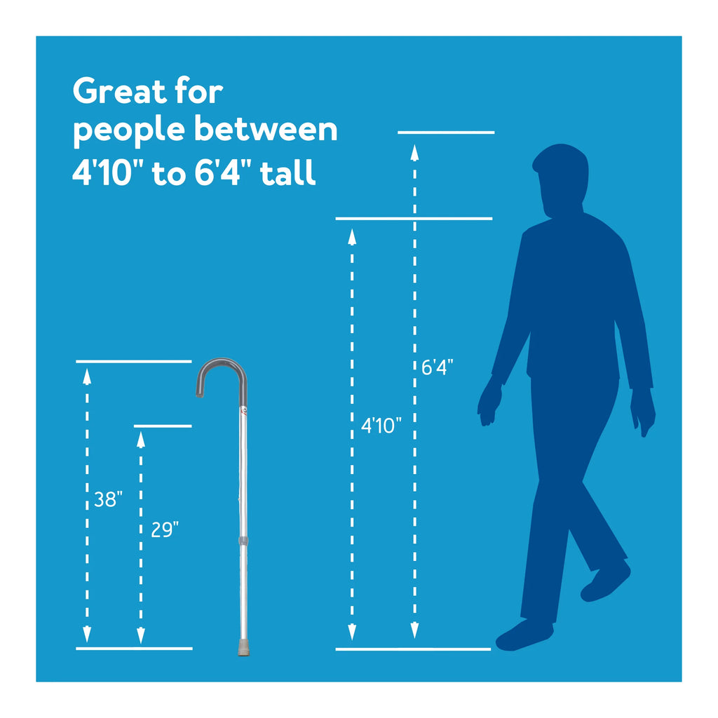 The cane is available in two handle size options, allowing users to choose a handle size that fits comfortably in their hand. With its adjustable design, durable aluminum build, and comfortable round handle, the Carex Aluminum Round Handle Cane offers a practical mobility aid for individuals seeking reliable walking assistance.