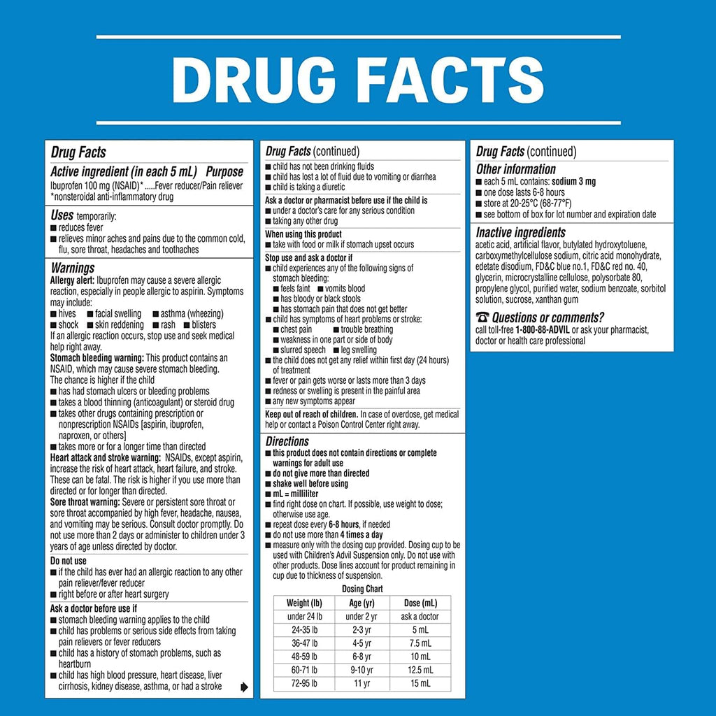 Quantity Info : ADVIL, ORAL SUSPN CHLD 100MG/5ML 4OZ