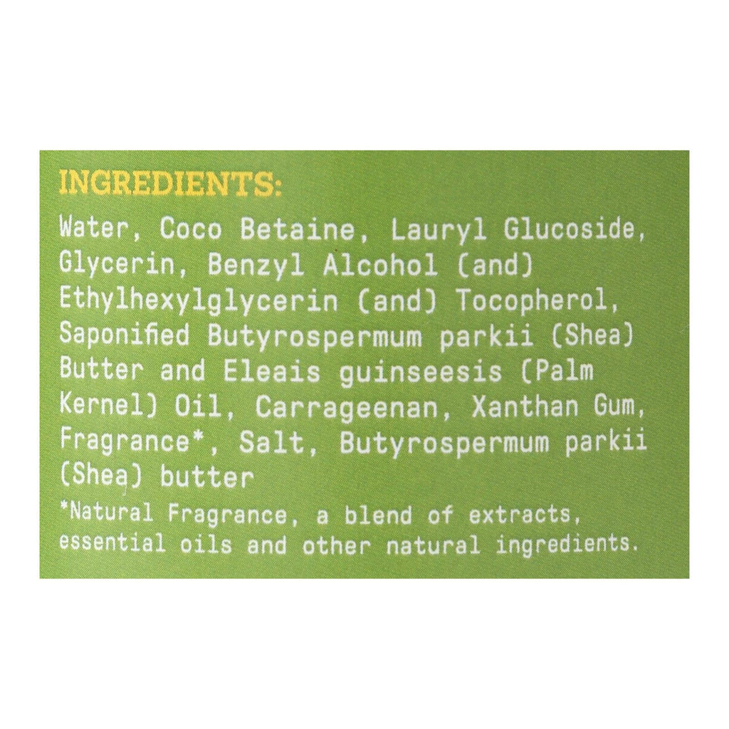 ingredients : water;coco betaine;lauryl glucoside;glycerin;benzyl alcohol (and) ethylhexylglycerin (and) tocopherol;saponified butyrospermum parkii (shea) butter and eleais guinseesis (palm kernel) oil;carrageenan;xanthan gum;fragrances;salt;butyrospermum parkii (shea) butter