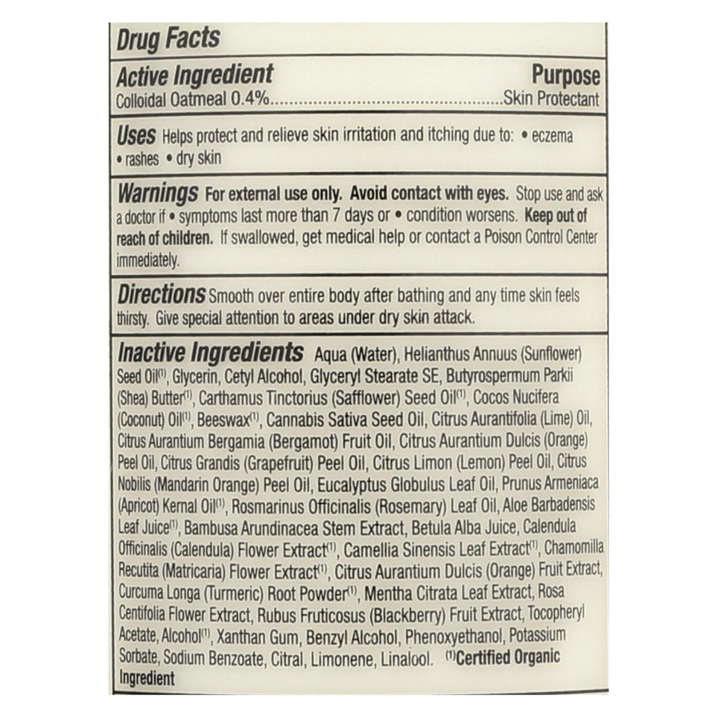 ingredients : aqua;water;helianthus annuus;sunflower;seed oil;1;glycerin;cetyl alcohol;glyceryl stearate se;butyrospermum parkii;shea;butter;carthamus tinctorius;safflower;cocos nucifera;coconut;oil;beeswax;cannabis sativa seed oil;citrus aurantifolia;lime;citrus aurantium bergamia;bergamot;fruit oil;citrus aurantium dulcis;orange;peel oil;citrus grandis;grapefruit;citrus limon;lemon;citrus nobilis;mandarin orange;eucalyptus globulus leaf oil;prunus armeniaca;apricot;kernal oil;rosmarinus officinalis;rosemary