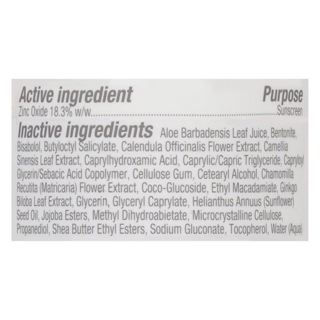 ingredients : aloe barbadensis leaf juice;bentonite;bisabolol;butyloctyl salicylate;calendula officinalis flower extract;camelia sinensis leaf extract;caprylhydroxamic acid;caprylic/capric triglyceride;capryloyl glycerin/sebacic acid copolymer;cellulose gum;cetearyl alcohol;chamomilla recutita (matricaria) flower extract;coco-glucoside;ethyl macadamiate;ginkgo biloba leaf extract;glycerin;glyceryl caprylate;helianthus annuus (sunflower) seed oil;jojoba esters;methyl dihydroabietate;microcrystalline cellulose;
