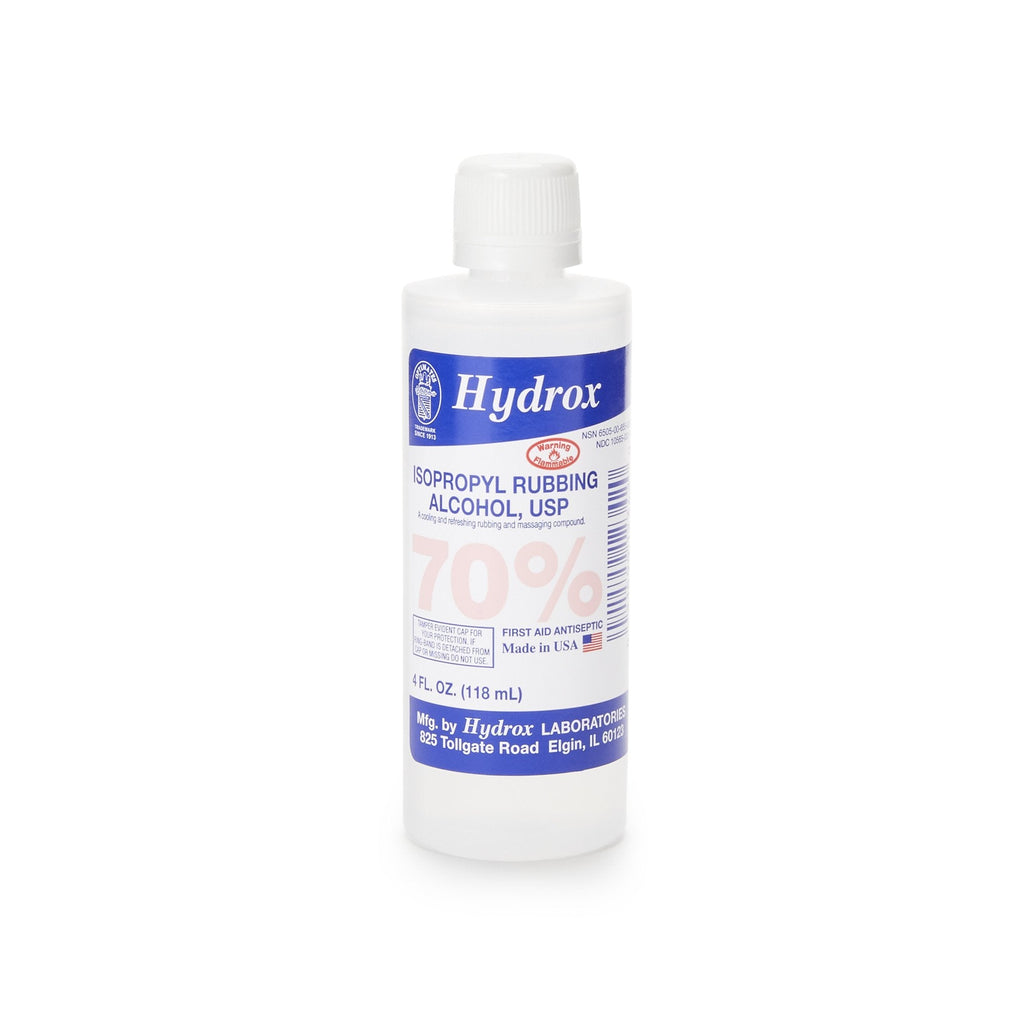 • 70% strength rubbing alcohol comes in a 4-fluid-ounce bottle