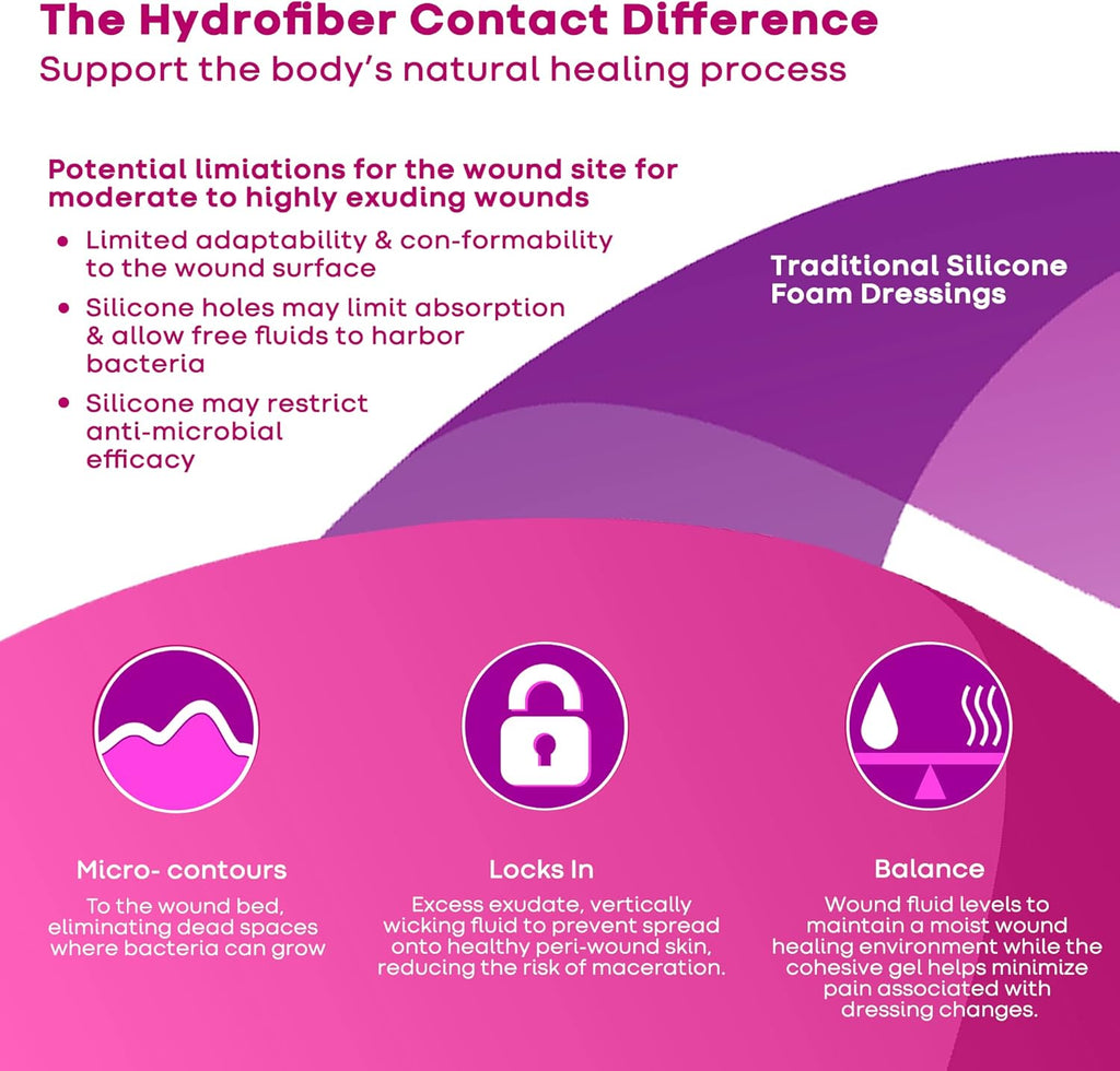 • Hydrofiber technology absorbs wound fluid and creates a soft gel to maintain a moist wound environment.