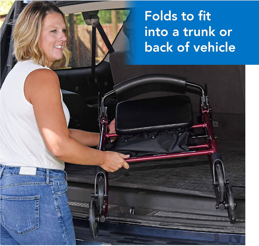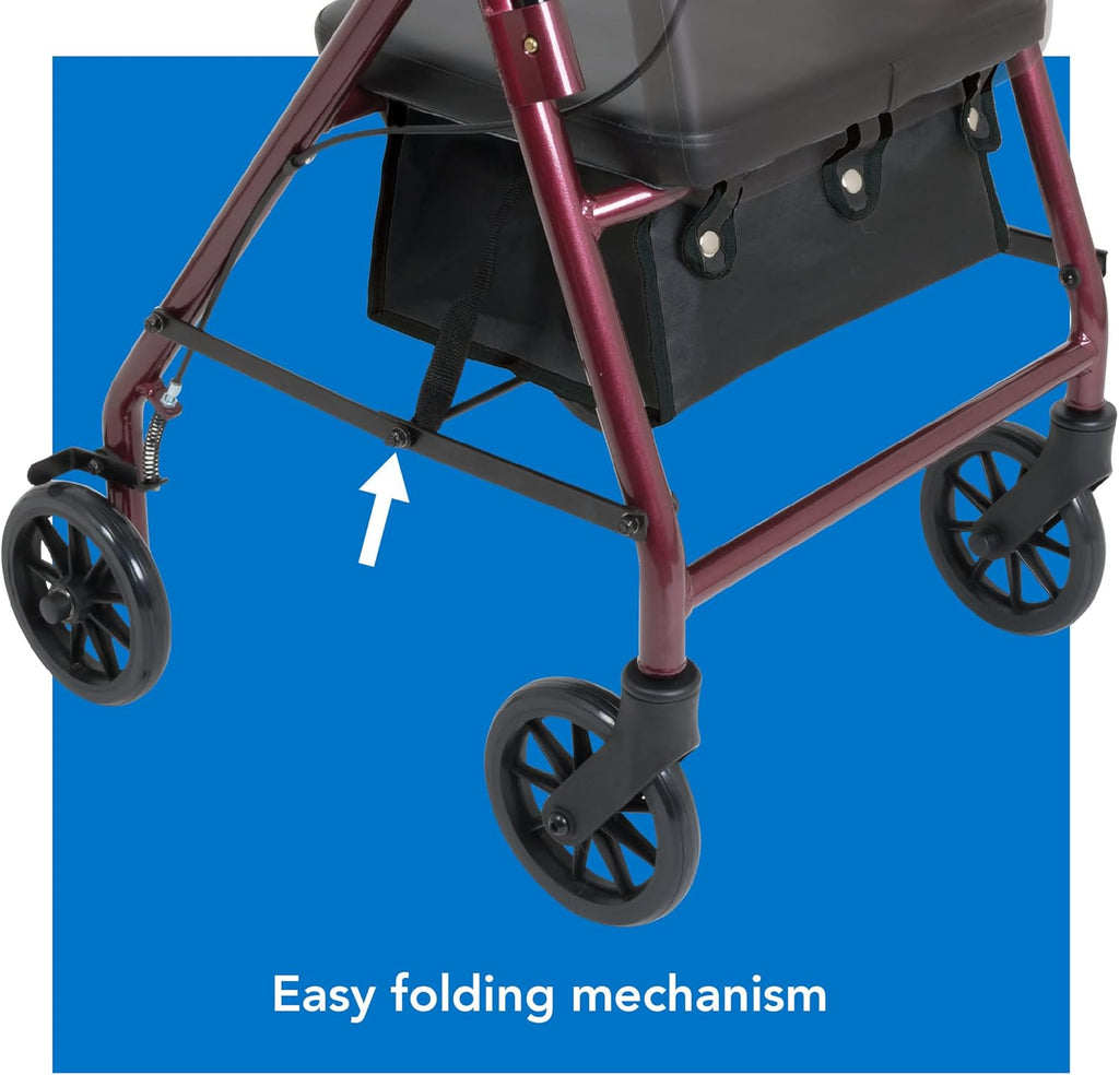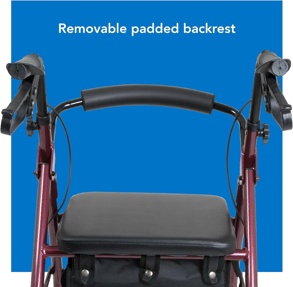 Question: What are the seat size and sitting features of Bariatric Rollator W/ 8 Wheels Burgundy?