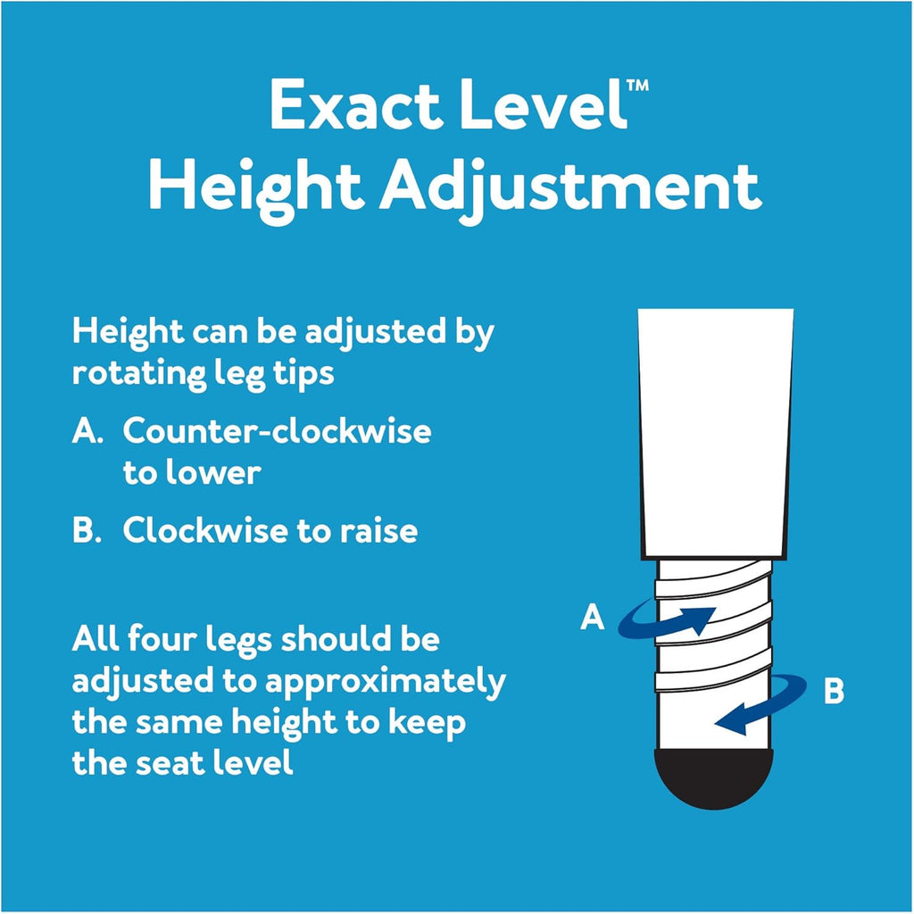 • Height adjustable 16" to 21". Our patented Exact Level height adjustment makes adjusting the height easy and quick. No more struggling to get shower seat height even on all legs. The adjustable shower chair's height range is perfect for a wide array of users.