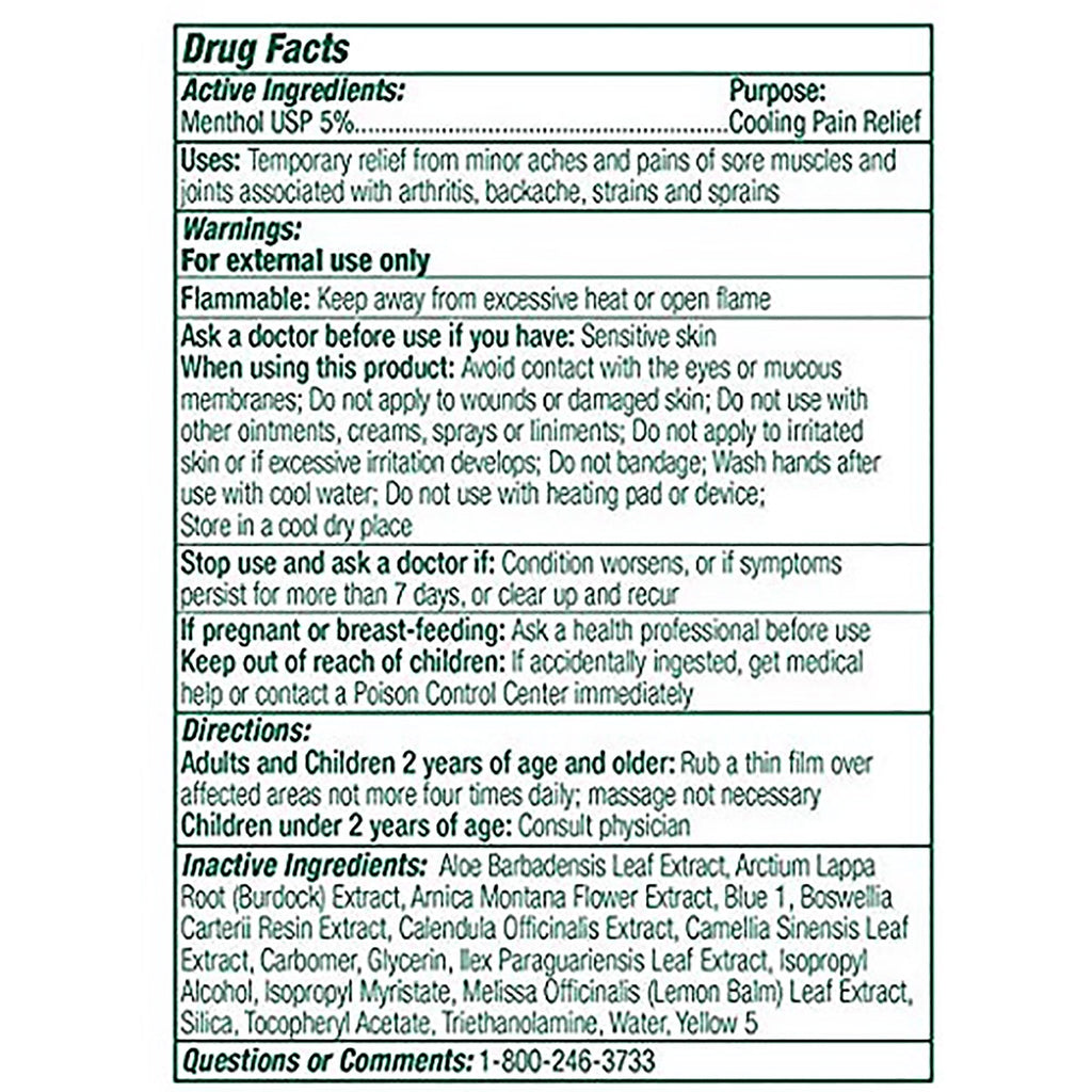 • This menthol topical gel comes in a handy, 3-ounce roll-on bottle .