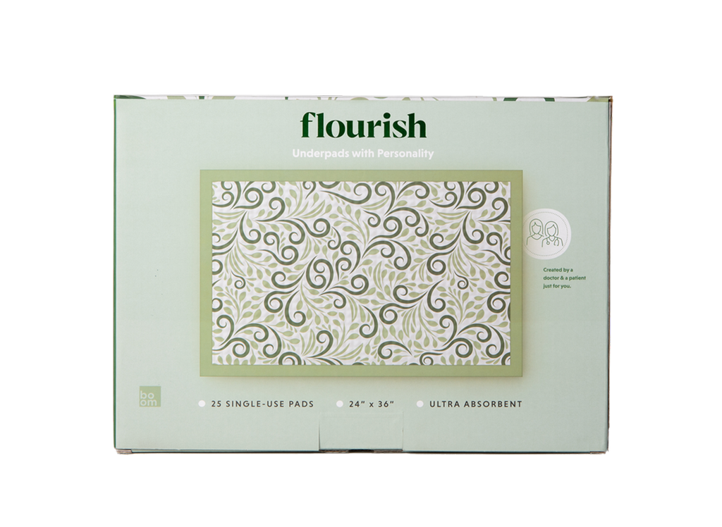 • Enjoy your home worry-free with Flourish underpads. Super absorbent to protect against unexpected bladder leaks and beautifully designed to fit seamlessly into your life.