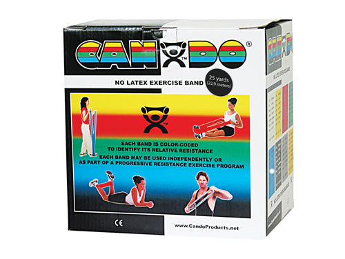 Cando Latex Free Exercise Band - 25 Yard Roll - Black - X-heavy: Cando Resistive Band Exerciser Roll Is Packaged In A Dispenser Box *simply Unroll Desired Length Of Exercise Band From Dispenser Box And Cut With Scissors *cando High Quality Synthetic Latex Free Exercise Band Has Been Used For Physical Therapy And Athletic Training By Clinics Fitness Centers And Individuals Since 1987 *it Has Become A Well Known Staple Of Many Physical Therapy Programs *the Latex Free Formula Has Been Specially Created To Mimic The Stretch Characteristics Of Latex Band *cando Exercise Band Is An Economic Solution For Upper And Lower Body Exercise *lightweight Compact And Portable *durable *effective When Used Alone Or With Handles And Anchors *color-coded According To The Exercise Band?s Resistance *cando Is Licensed To Use The Thera-band Color Sequence So Resistance Level Is Easily Identified *available In 8 Levels Of Resistance For Progressive Exercise *levels Range In Order Of Strength From Least To Greatest Resistance: Tan Yellow Red Green Blue Black Silver Gold *uniform Width - Each Band Is 5 Wide *dimensions: 7 X 6 X 7 *weight: 4.0 Lbs *upc: 714905043207
