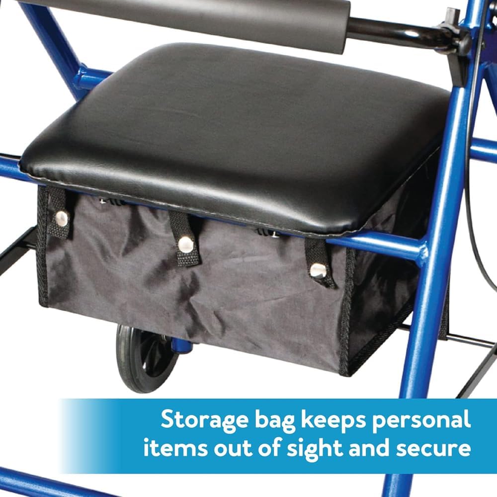 The Classics Rolling Walker has lockable handbrakes for safety and a padded seat and backrest that provide comfort during use. The convenient storage area under the seat holds personal items securely. Folds quickly and easily for storage and transport. No assembly required.