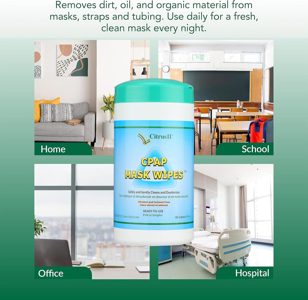 • Citrus II CPAP Mask Cleaners contains a special formula made from vegetable-derived cleaners to effectively clean all types of CPAP mask and accessories. Also for use on BIPAP masks, nasal pillows, nasal cannulas, O2 masks, and accessories. It gently removes dirt, oils, and organic matter from masks, straps and tubing. Use daily for a fresh, clean mask every night. Citrus II CPAP Mask Cleaner won’t deteriorate the mask or shorten it's life, and it's safe and easy to use. Available in wipes or sprays. Citrus II is the fresh approach to health protection.