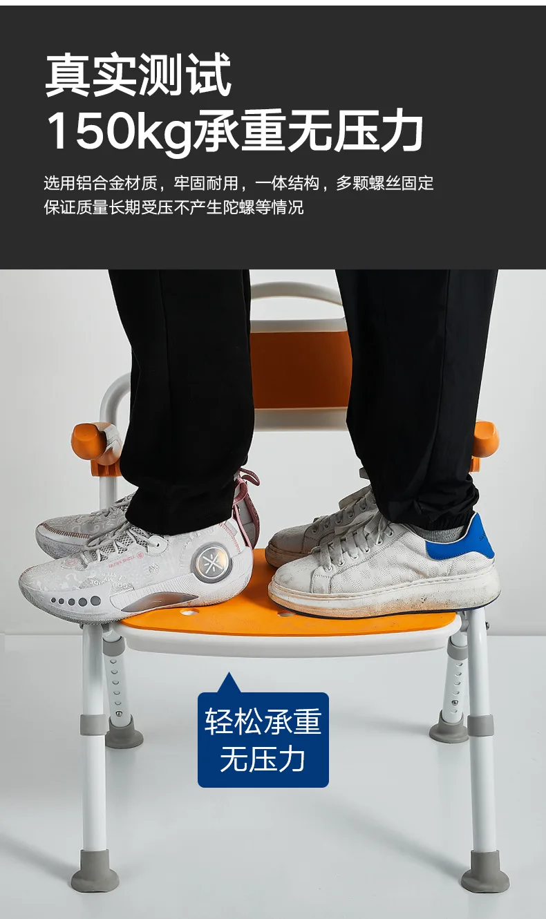 Safety is our top concern. This shower chair features a unique anti rollover design that maintains stability even in slippery bathroom environments, allowing both the elderly and pregnant women to use it with peace of mind.
