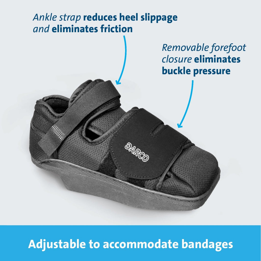 • Ankle strap seats foot firmly in shoe to reduce heel slippage and eliminate friction