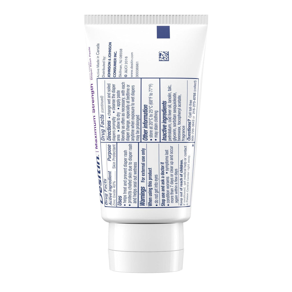 DESITIN® Maximum Strength Original Paste contains the maximum level of zinc oxide, immediately forming a protective barrier to help heal and soothe diaper rash discomfort. Our thick, rich, hypoallergenic, pediatrician-tested formula provides overnight relief for baby's tender skin. There's no stronger treatment available without a prescription.
