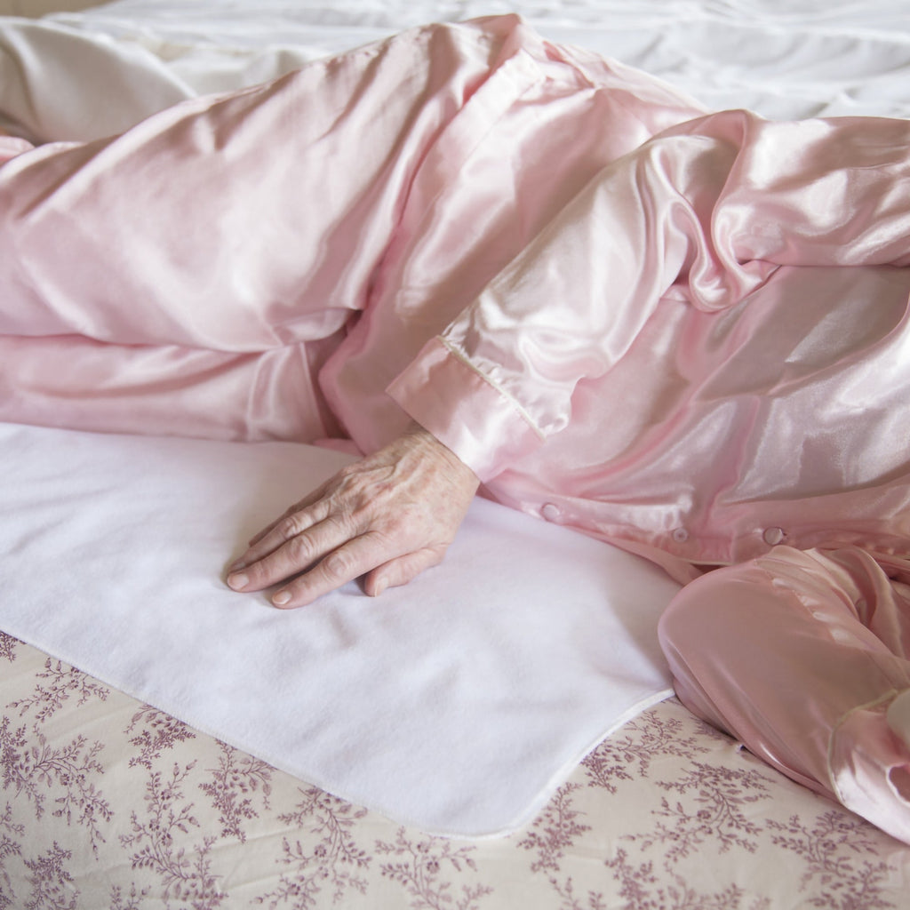 Answer: A protective bed pad that shields mattresses, chairs, or furniture from leaks and spills.