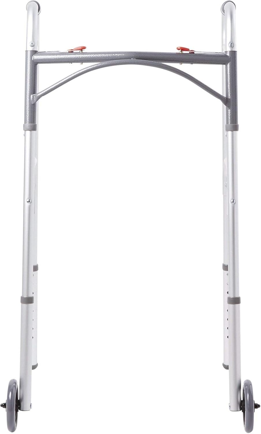 Walkers are essential senior aids for daily living, helping to restore independence that can be lost when mobility issues begin to arise. The McKesson Aluminum Folding Walker is a versatile and robust solution for those who need mobility aids, with adjustable height settings, a lightweight yet sturdy construction, and 5-inch front wheels with improved rear glide caps that allow the aluminum walker to slide easily and smoothly over most surfaces.