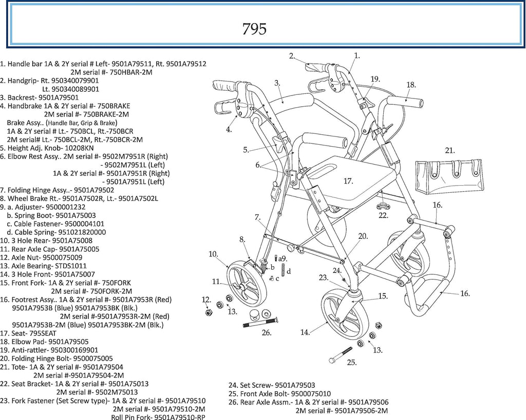 Question: Does Drive Medical Aluminium Rollator For Seniors and Elders, Wheel size 8inches With Height Adjustable 31.5" - 37", Weight Capacity 300lbs,Blue Color, 795B come with hand brakes or attendant brakes?