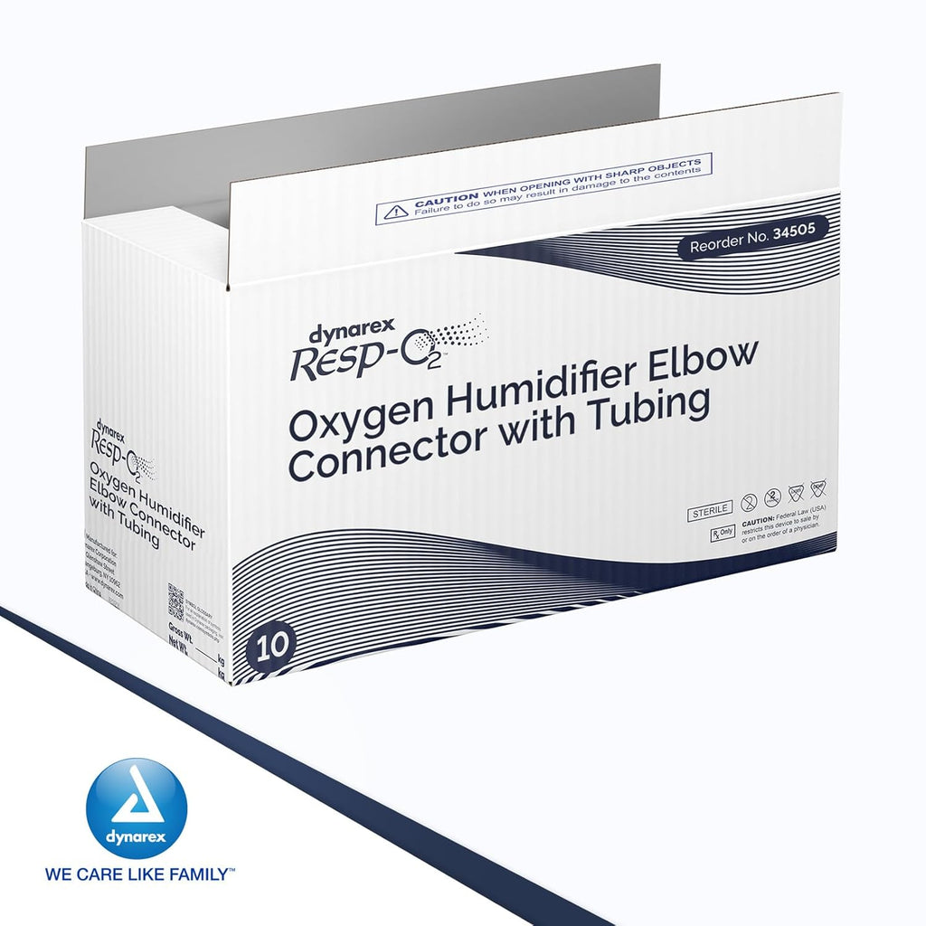 The Dynarex Resp-O2™Â Oxygen Humidifier Connector is designed to attach a dry humidifier bottle or pre-filled bubble humidifier to continuous flow oxygen concentrators. Dynarex Resp-O2™ Oxygen Humidifier Connectors come with either sturdy oxygen tubing on one end and a male threaded grip elbow on the other end, or with star lumen oxygen tubing on one end and molded threaded straight connector on the other end. Oxygen Humidifier Connectors are universal and can fit most humidifier bottles with a DISS connection.