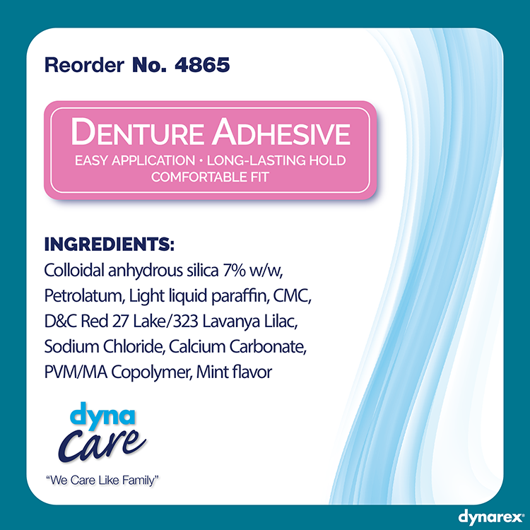 Dynarex's Denture adhesive offers a strong bond and firmly holds dentures in place while forming a seal to keep food particles out. The adhesive cream is easily applied providing a comfortable, long lasting hold. The Dynarex Denture Adhesive is ideal for use in facilities such as nursing homes, rehab centers, hospitals and long term care facilities.